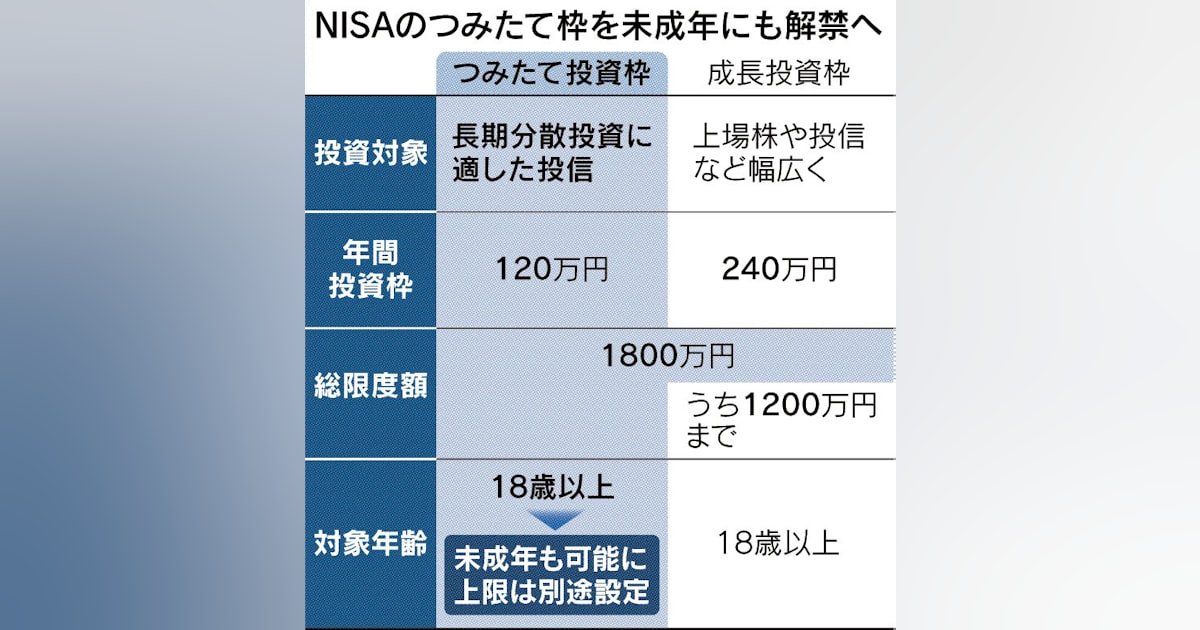 NISAの口座開設対象を現行の「18歳以上」から「0歳の乳児」まで拡大し、未成年でも利用できるようにする。